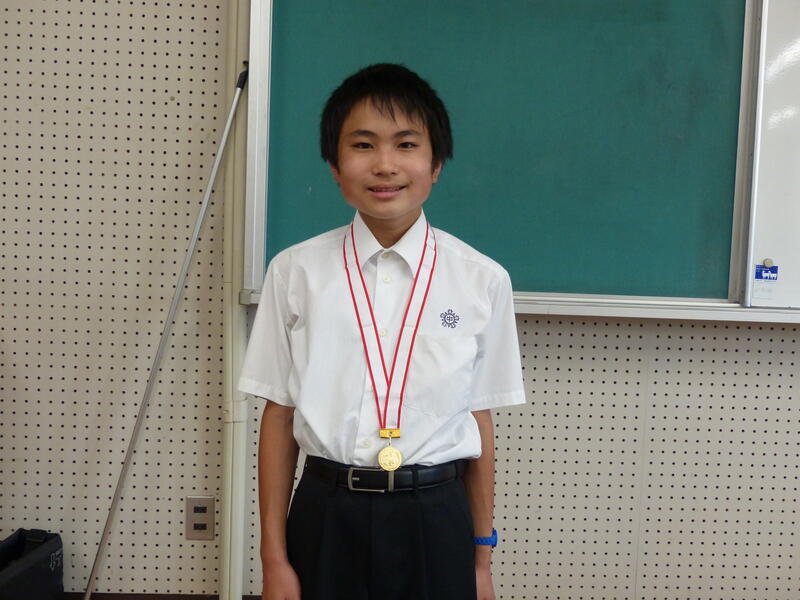 本校で初めて全国中学校放送コンテストの朗読部門に参加した宮尾祥音くんにNHKからメダルが授与されました。日頃から高校生と一緒に練習している成果です。