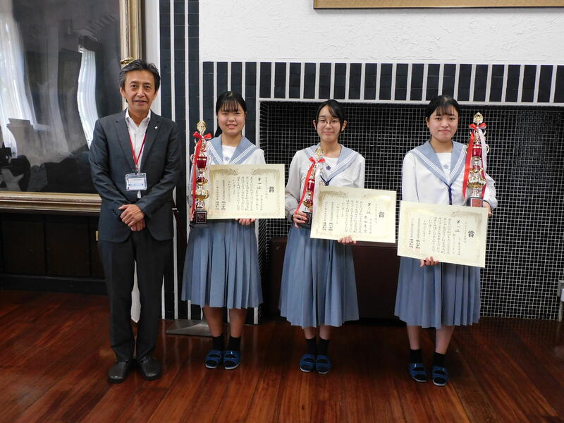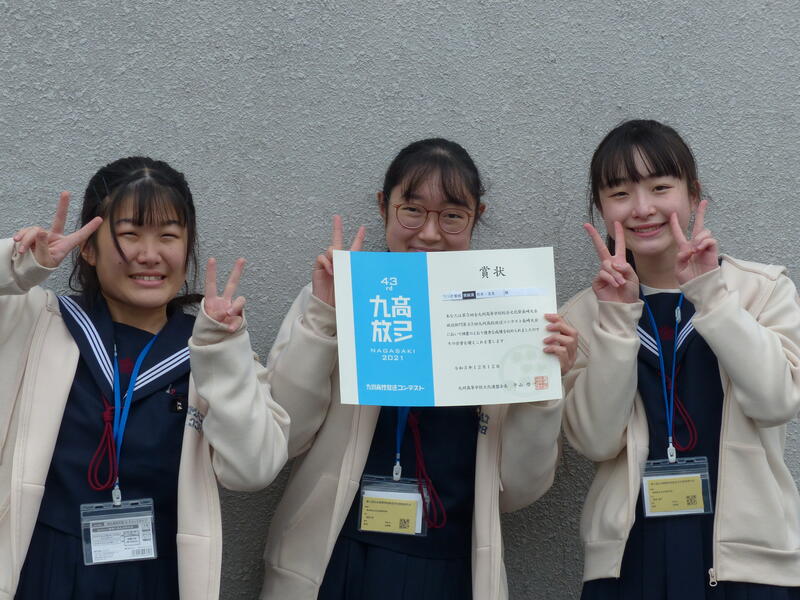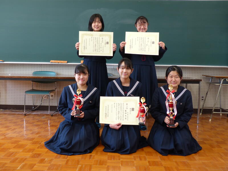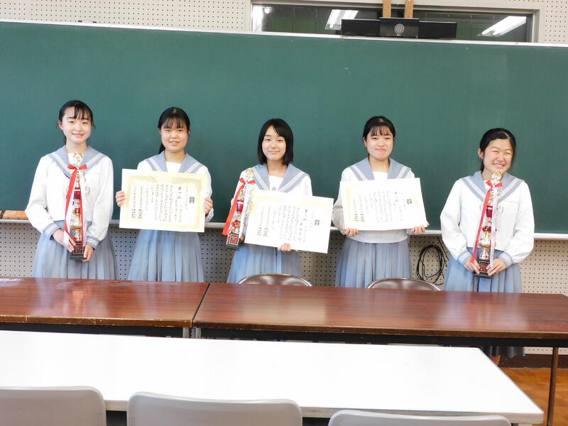 アナウンス部門では1年生の原田美花さん、朗読部門では1年生の池上天音さん、2年生の小澄夏鈴さん、原田青空さん、本田麻桜さんが決勝に進出し、このうち原田青空さんが3位に入賞し九州大会の出場権を獲得しました。