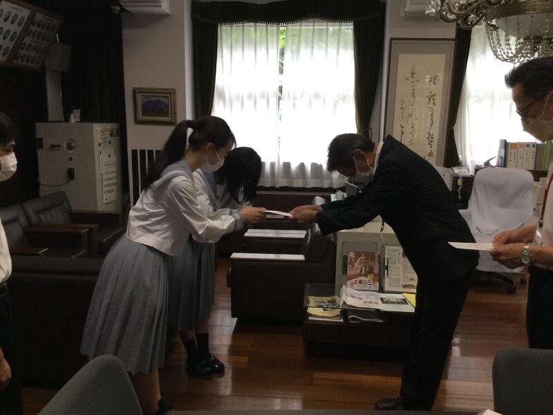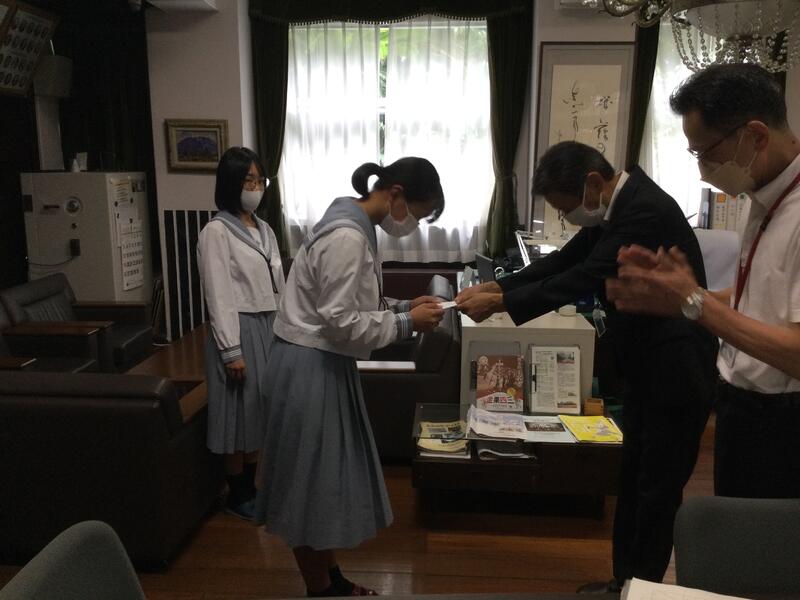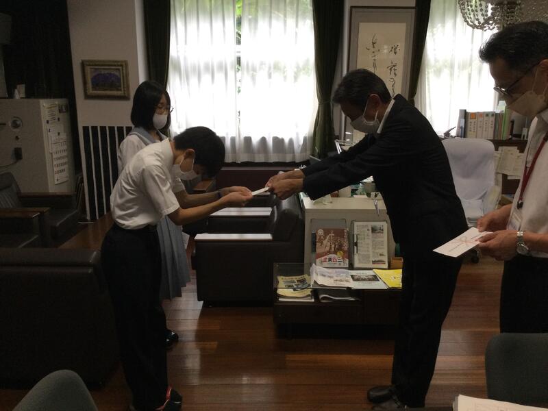7月20日(水)に、NHK杯全国大会に出場する高校(アナウンス部門及びラジオドキュメント部門)と附属中学校(朗読部門)に対して激励金の贈呈式がありました。今回のNHK杯では、中高共に全国大会出場という素晴らしい結果を残してくれました。