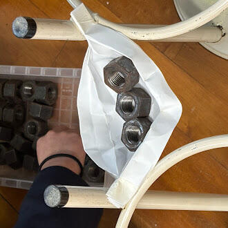 大きさは50cmから手軽にできるA4長辺の長さである29.7㎝にし、負荷をかけるナット(123g)が8個乗ればOKとしました。上の写真はまずは時短で簡単に作ったものです。