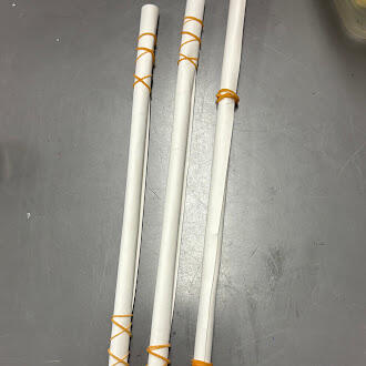 もう一人の生徒は、ケント紙をパイプ状に加工し補強しました。ケント紙を水に濡らし、細い棒に巻き付けて乾燥、糊付けをして完成です。安定の84個達成でした。