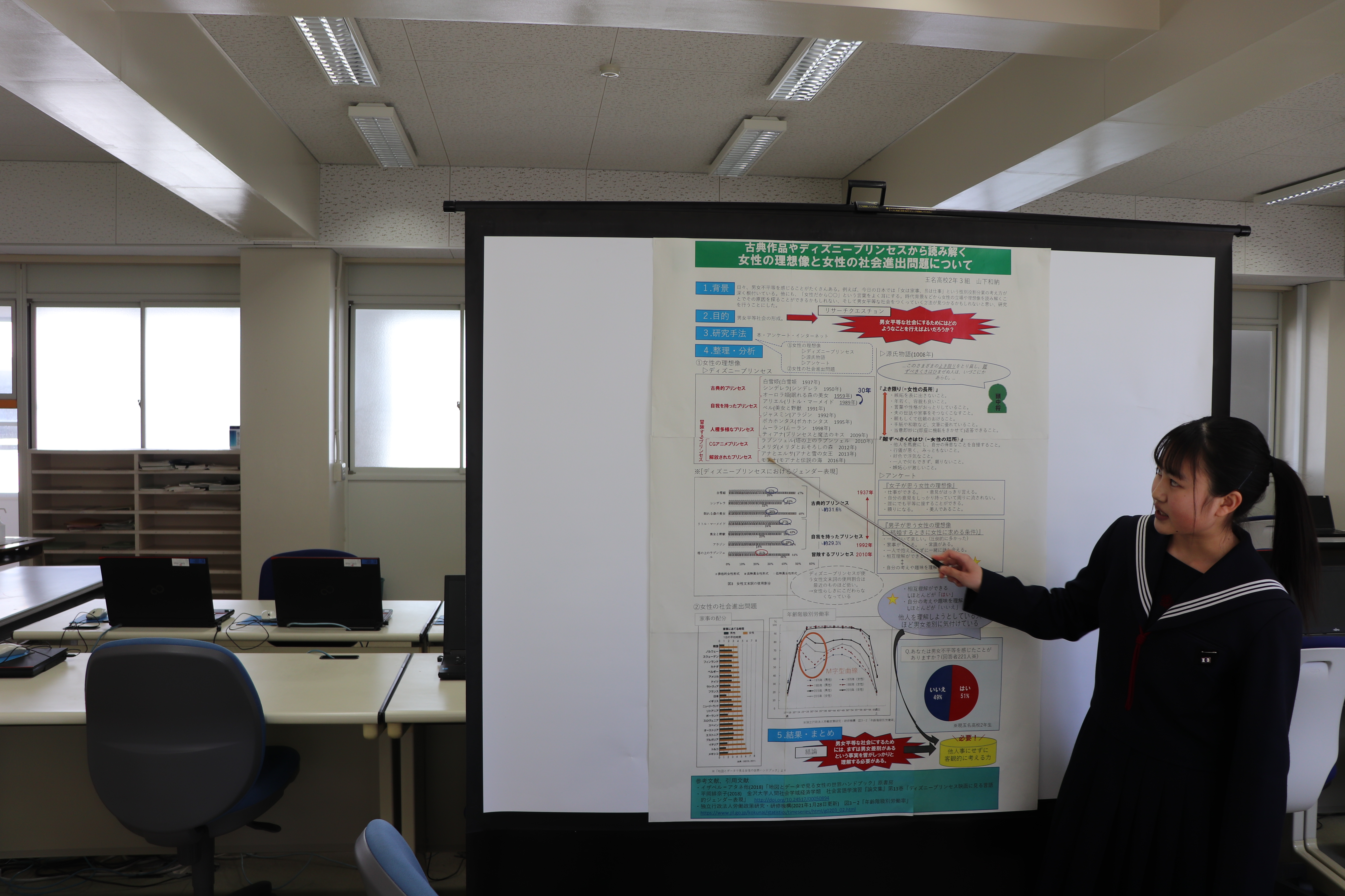 本校からは研究テーマ「古典作品やディズニープリンセスから読み解く女性の理想像と女性の社会進出問題について」(国内・国外社会課題)が書類審査を通過し、3月24・25日にオンラインで開催される大会でポスター発表を行います。