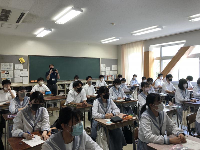 講演の途中には、事前課題の答え合わせも盛り込まれ、生徒たちにとって、日本とスウェーデンの違いや共通点など、新たな発見にあふれるとても楽しく貴重な時間となりました。講演後の質疑も活発に行われ、スウェーデンの食についてや、外交についての質問が生徒からありました。
