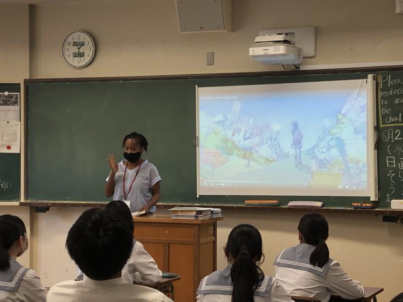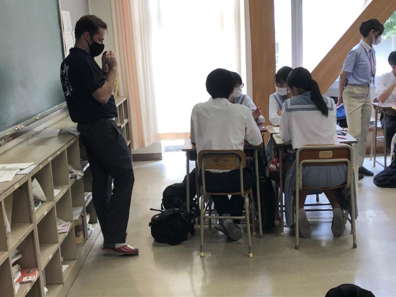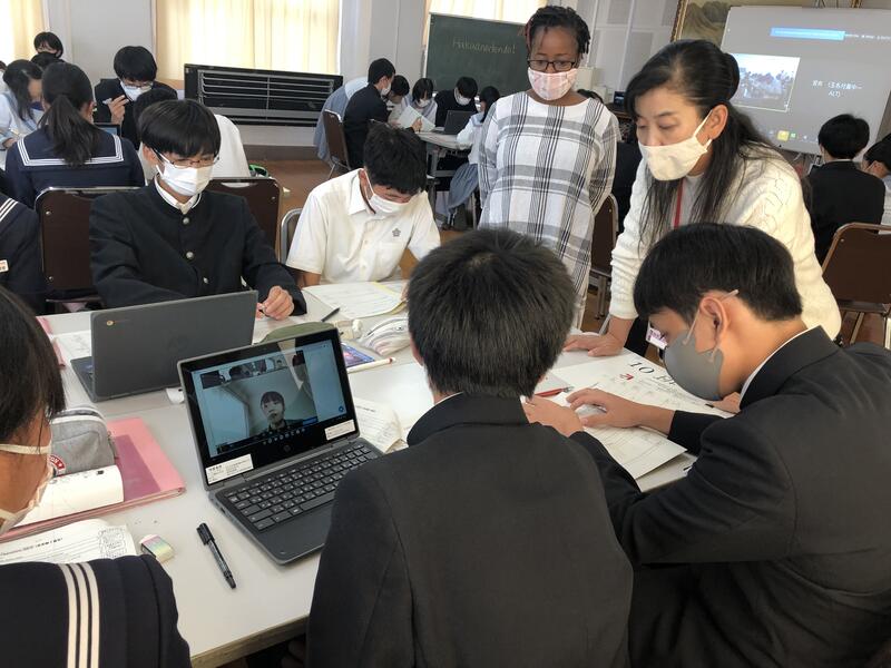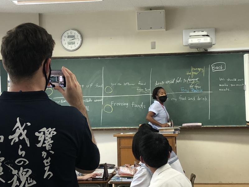 本校には2人のALTが配置されていますが、今回は、ALTのオラ先生による授業の様子を撮影されました。新しいALTの先生方が参考にされ、熊本県の英語教育のさらなる充実・発展につながることを願っています。