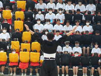 5月9日(火)、いよいよ今週末が体育祭本番となりました。今日は校歌の練習を沢山しました。数年ぶりの校歌斉唱は迫力があります。通常に戻ってきた感じがしますね。生徒会長の河野くんは「創立120周年にふさわしい最高な人文字を完成させてほしいですね。」と語ります。本番が楽しみですね!(生徒会総務部)
