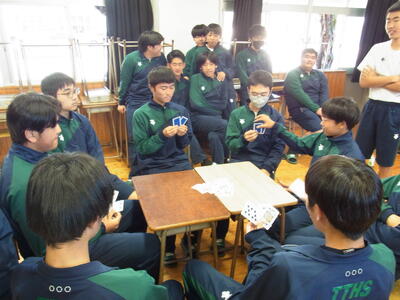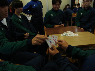 3月23日に令和7年度3学期クラスマッチを実施しました。天候に恵まれ穏やかな春の日差しで桜も咲き始めましたが前日の雨の影響でグラウンドが使用できず、雨日程での実施となりました。1・2年生ともにバスケットボール、モルック、トランプ(ババ抜き)の種目を行いましたが、特に生徒会が考えてくれたモルックとトランプは大いに盛り上がりました(^^)/