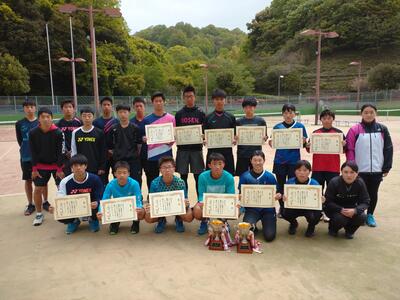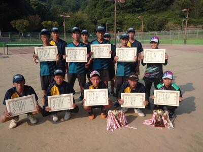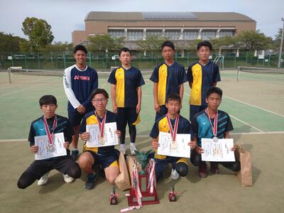 4月27日に荒玉地区体育大会ソフトテニス競技が行われ、男子の部でAチームが優勝、Bチームが準優勝しました。