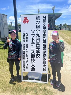 7月12~14日に宮崎市にて第71回全九州高等学校ソフトテニス競技大会(九州大会)が行われ、女子個人戦に電子科3年高椋美怜・工業化学科3年池田祐萌ペアが出場しました。1回戦で敗退したものの様々な課題が見つかり、次へつながる大会となりました。
