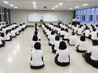 令和3年6月29日(火)に全校での激励会がグラウンドで実施されました。また、実習棟4階において工化会(工業化学科同窓会)会長の成木信一様より激励の言葉をいただきました。木本さんは、「周りの人に応援していただいき、たいへんうれしく思っています。ありがとうございます。練習の成果を発揮し、工業化学科の生徒として、頑張ってきます。」と宣誓しました。