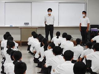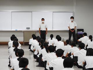 工業化学科1・2年生へ、3年生から各自の進路決定までの取り組み、アドバイスをしました。