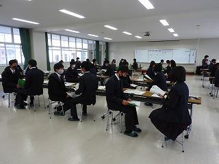 令和2年1月21日(木)3,4限目 視聴覚教室 図書室(3年待機場所)