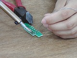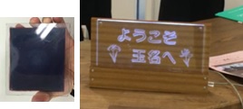 2つ目に花しょうぶの色素を使って色素増感太陽電池を製作し、その発電を利用して玉名の観光に貢献するためにLEDメッセージボードを作製しました。