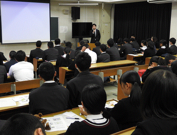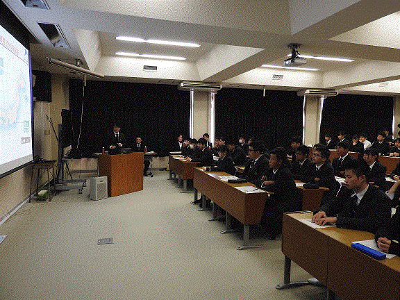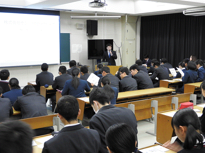 講演では、まず各会社の説明や仕事内容、会社に入っての経験談、先輩の高校時代、就職試験に向けて大切なこと等の話がありました。その後の質疑応答の時間では、本校の1・2年生から様々な質問がなされ、在校生にとって大変貴重な時間となりました。