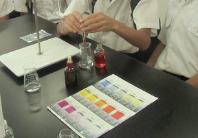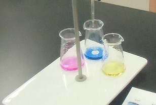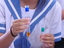 メチルオレンジ、BTB溶液を使用し、中和点での色の変化を体験していただき