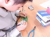 当日はルーテル学童クラブの子どもさん約50名と先生方と実験を行いました。工業化学科では、スライム作りで好きな色のスライムを作っていろんな形を作って遊ぶことができました。電気科では、友達と写真撮影をして、いろんな背景を取り込んで、写真入りのキーホルダーを作りました。みんな元気で明るく、楽しく実験ができました。