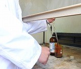 ペットボトルを静置(還元反応):グルコースの作用で、色素が還元される。
