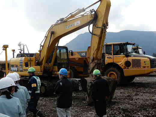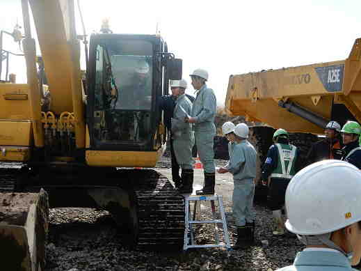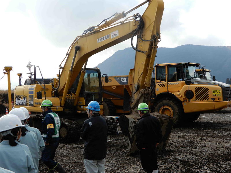 生徒諸君は、今まで見たことがない巨大な建設機械やICT施工というテクノロジーに驚かされっぱなしでした。