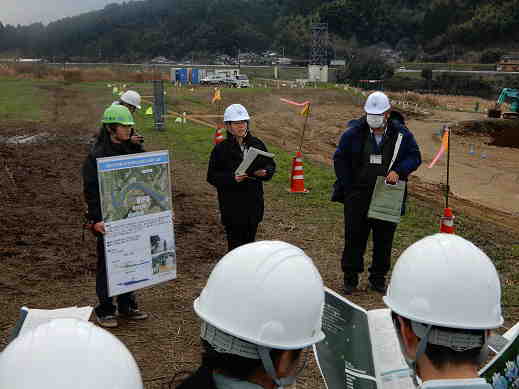 なお、土木科の卒業生で池田建設2年目の田中君が現場の概要説明を行ってくれました。田中君は入社2年目にして現場責任者に抜擢され、参加した生徒は尊敬のまなざしで説明を聞いていました。