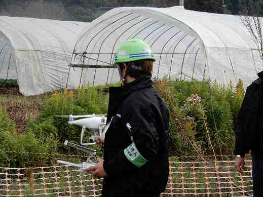 見学会の最後には、土木科の卒業生 田中君がドローンを操作し、上空からの記念写真撮影を行いました。