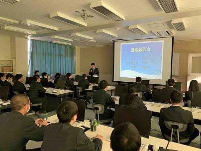 3年生10人が就職先の所在地や会社の規模、仕事内容について説明した後、合格を勝ち取るためにどういう準備をしたか、これからやっておいた方がいいことなどを2年生にアドバイスしました。