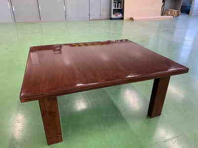 これはちゃぶ台です。塗装に力を入れ、少し高級に見えるよう工夫しました。応接間にも使用できるのではないでしょうか。