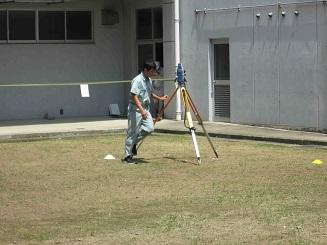1年生では、測量機器の操作方法を学び、角度や高さを測ったりする技術を身につけます。