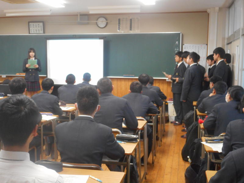3年生の代表生徒が、2年生へ今年の就職や進学試験での体験を話し、アドバイスしました。