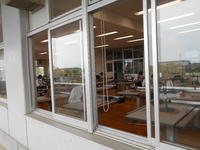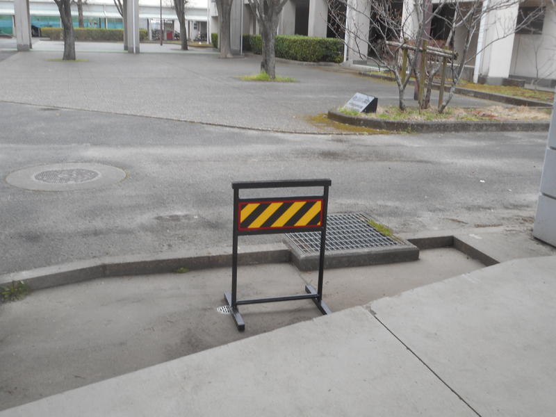 (1)立入禁止看板・・・校内の渡り廊下に誤って自動車が侵入しないよう
