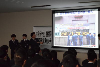 機械科3年生は課題研究という授業で、1年間班別で一つのテーマについて研究します。