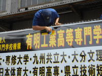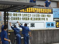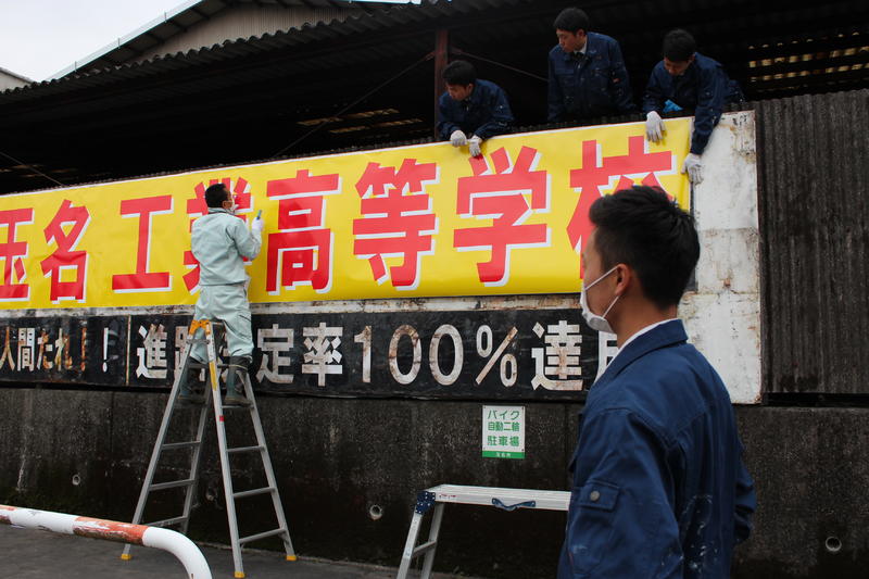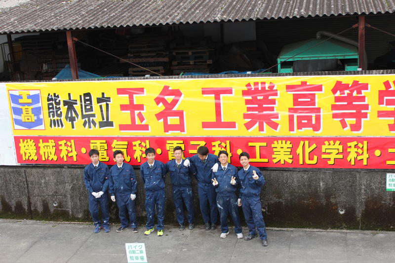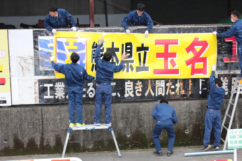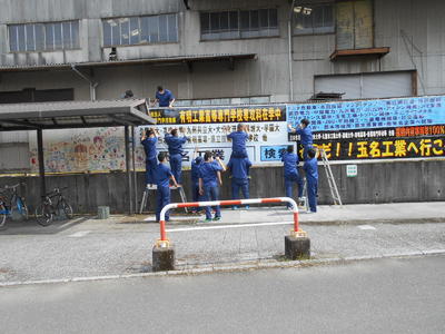本校、機械科では課題研究で玉名工業をPRする看板を玉名駅裏のJA玉名壁面に設置しております