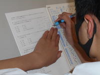 本日、5月21日(木)3年生の分散登校にあわせて、「3密」を徹底しながらSPI試験を実施しました。