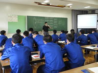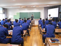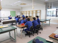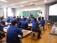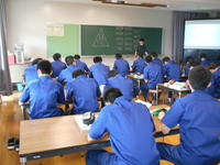 取り組みます。写真は機械検査実習風景です。レポートの書き方についての講義です。