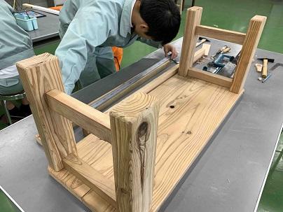 実習では、ほぞ組みによる椅子やテーブルを製作します。