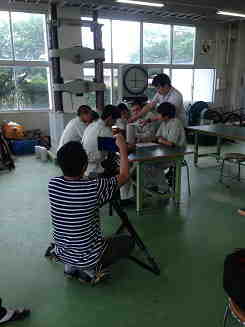 撮影は、まず実習室で行われました。
