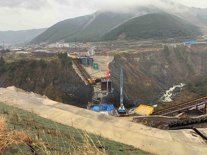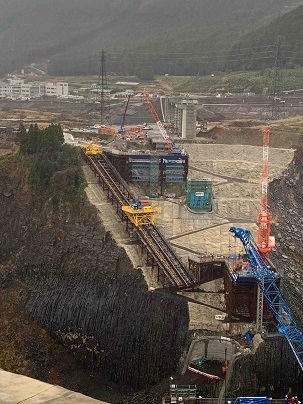 まずはじめに向かったのは、熊本地震により崩落した阿蘇大橋の架替工事現場です。