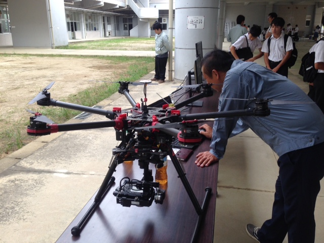 体験入学では、実際の災害現場でドローンを飛ばして映像を撮影し、地図を作成したものをお見せしました。そして、実際にドローンを飛ばしてみました。