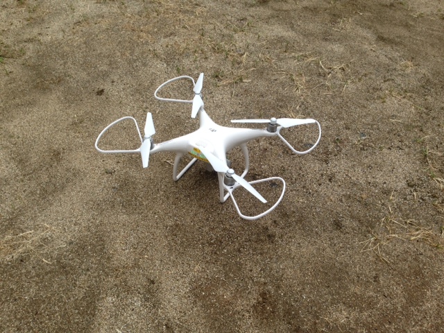 今回飛ばしたのはこちらの小型版です。最も普及しているタイプのドローンで、日本各地の建設現場で活用されています。今回は30mの高さまで飛ばし、上空からの画像をモニターに映して見せました。