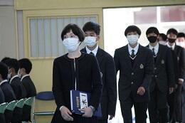 3月28日に本校体育館にて令和3年度 転・退任式を実施しました。体育館入場は1・2年生のみで卒業生にはYouTubeにて動画配信を行いました。