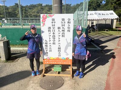 12月8日から10日まで沖縄県総合運動公園にて令和5年度第53回九州高校新人ソフトテニス競技大会があり、昨年の男子に続いて熊本県代表として女子の橋本・橋本ペアが出場しました。結果は初戦敗退になりましたが、粘り強く戦い、とても貴重な経験となりました。