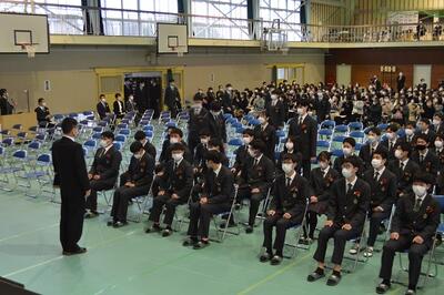 9月10日に3年生の就職希望者のみを対象に体育館にて令和3年度3年生就職激励会を実施しました。校長先生の激励の言葉に続いて、就職希望者を代表して機械科の松本昌士君が決意表明を行いました。