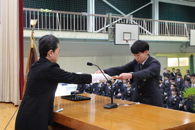 3月22日に令和5年度3学期表彰式を本校体育館にて実施しました。表彰式ではレスリング九州大会、英検、皆勤賞、学力コンテスト、美化コンクールなどの多方面の表彰がありました。