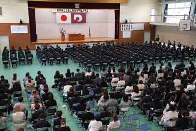 3月1日に本校体育館にて第59回卒業式が実施されました。コロナの制限も緩和され通常の保護者席が足らないほど、たくさんの保護者に来ていただきました。