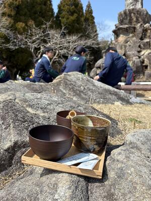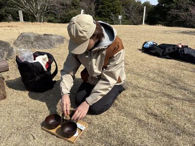 山頂でお茶をいただきます。