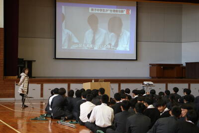 【学校】命の教育講演会 投稿日時 : 12/05 学校生活 命の教育講演会 12月3日(水)に、1学年生徒を対象に実施しました。フォーシーズンズレディースクリニック院長の田畑愛先生を講師としてお迎えし、「皆さんに知ってほしい大切なこと」という演題でご講演いただきました。女性の体のことや妊娠、性感染症や性暴力のこと、命の大切さなどについてお話をいただきました。生徒たちが自らの生き方について見つめなおす良い機会となりました。 Tweet {{options.likeCount}} {{options.likeCount}} 0 コメント