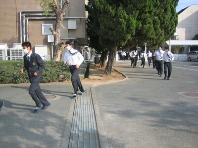 11月1日に避難訓練を実施しました。一部アクシデントはありましたが、それぞれが対応し全員グラウンドに避難することができました。また、消火器の使用方法と実演もありました。