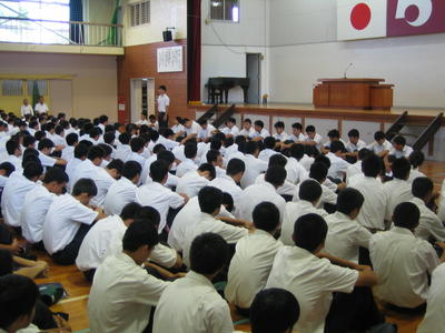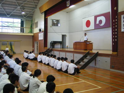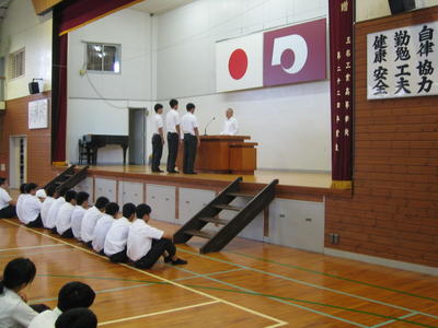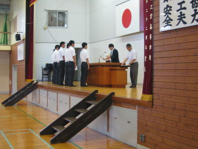 7月19日に体育館にて1学期の終業式が行われました。終業式の前に表彰式があり、高校総体の体育系の部活動や、ものづくりコンテストの表彰などがありました。