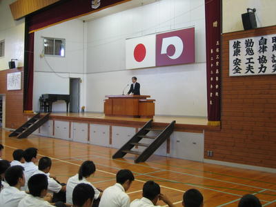終業式では校長先生より「玉工生としての自覚を持ち、玉工ブランドを高めるとともに目標を持って行動し、命を大切に過ごすように」講話をいただきました。