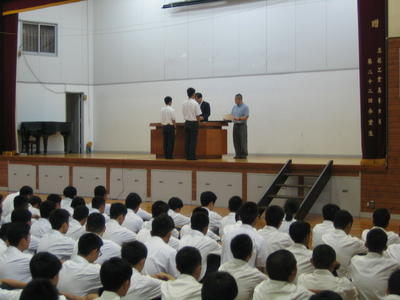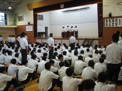 9月2日に表彰式、始業式が体育館にて実施されました。表彰では吹奏楽、バスケットボール部、ジュニアマイスターなどの表彰がありました。