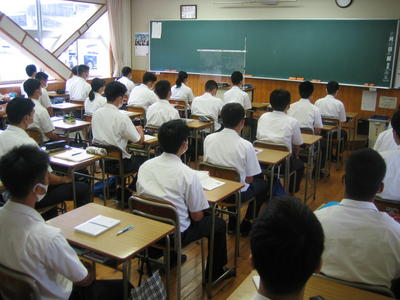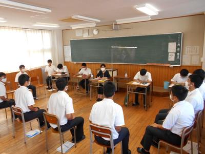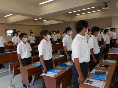 8月27日に2学期の始業式が実施されました。新型コロナウィルス感染防止のため、校内放送での始業式となりました。校長先生からは「命の大切さや各学年に向けてのメッセージ」などのお話がありました。また、始業式の前には表彰式(放送)もあり、県吹奏楽コンテスト銀賞や危険物甲種取得、計算技術検定1級取得の紹介もありました。