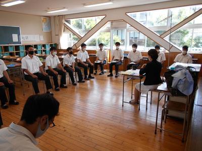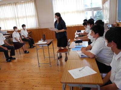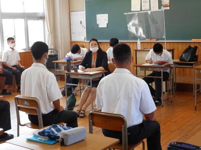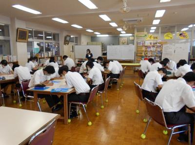 今回は、1日に2クラスとし、4教室と視聴覚室・図書室を使い十分ソーシャルディスタンスをとり実施しています。